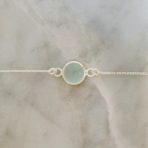Auqa Chalcedony cabochon cut silver chain bracelet