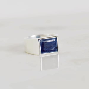 Sodalite rectangular cut wide band silver ring no.2