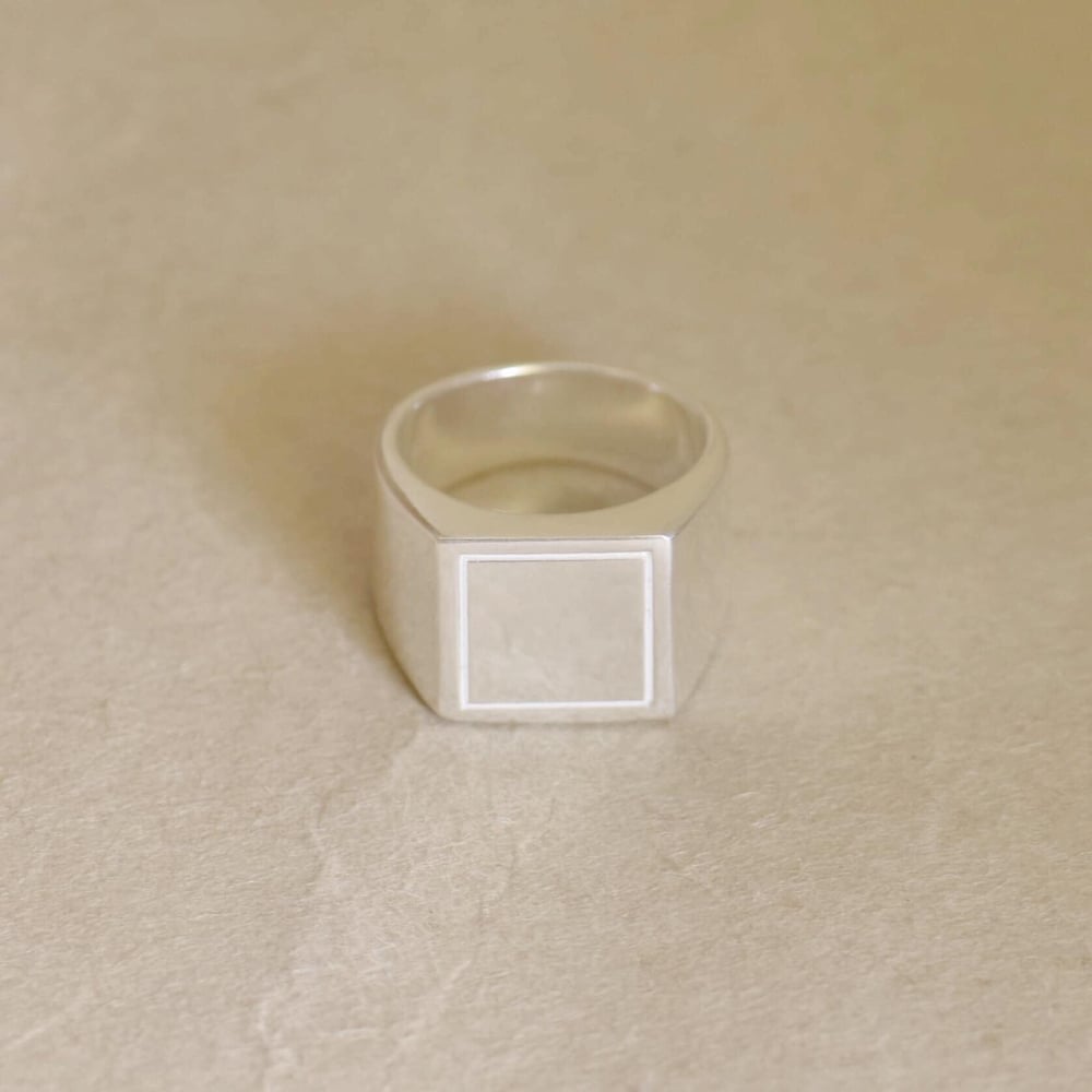 'Square Sky' flat face engraved solid framed 950 silver signet ring